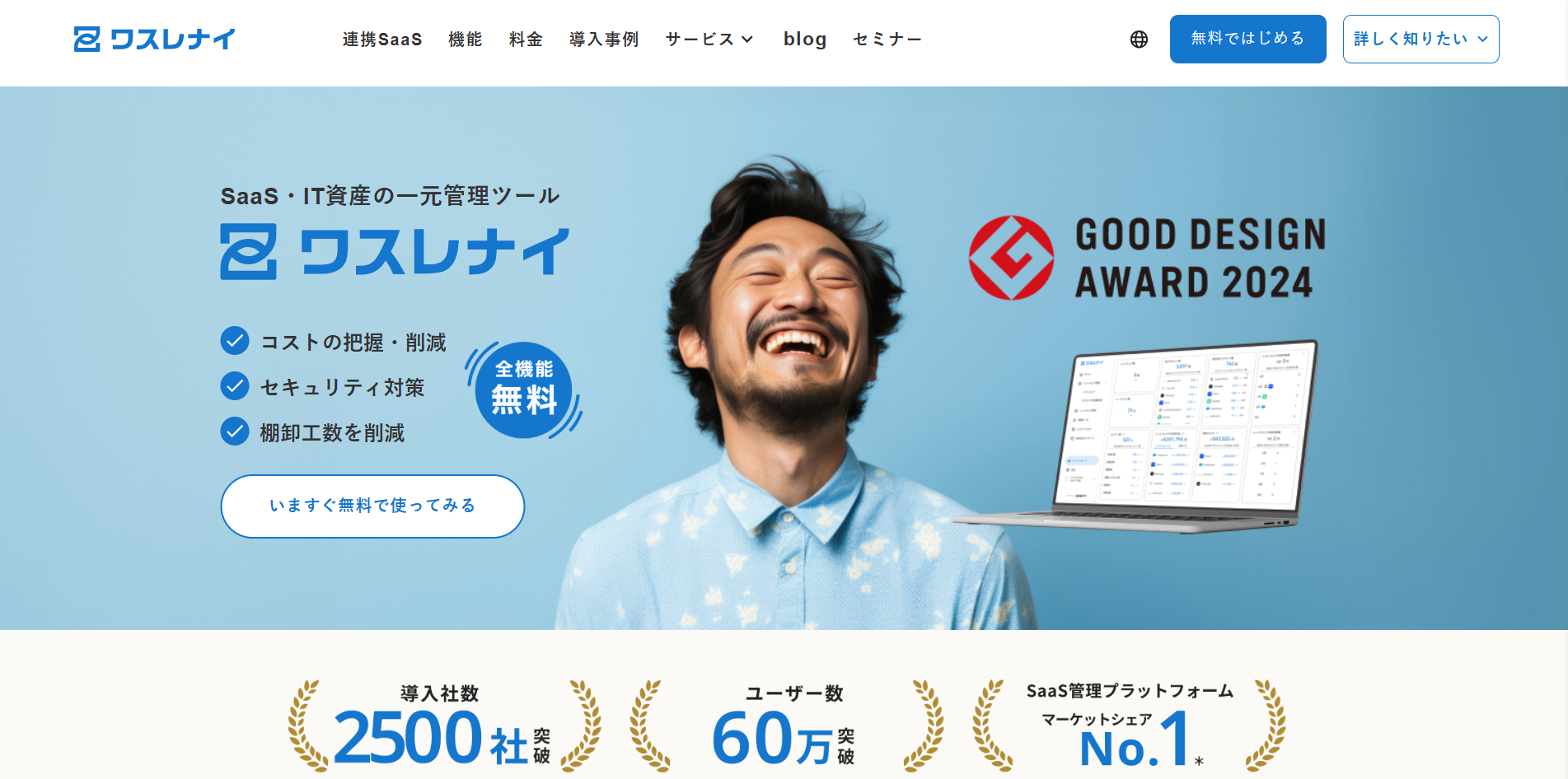 • SaaS利用状況を可視化・最適化 → ワスレナイのAPI連携が最適