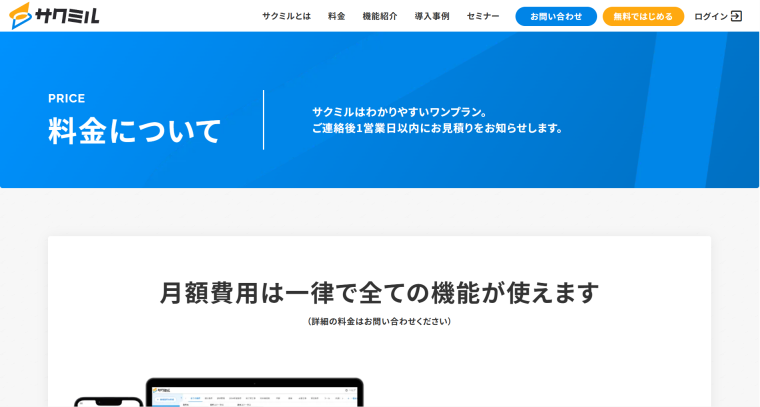サクミルの料金・機能・評判を整理。月額¥9,800や無料2か月などの条件確認点と、定着の鍵(命名・権限・更新)を解説。