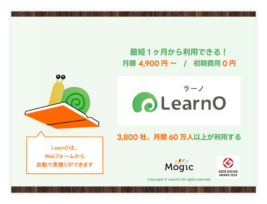 - 小規模から利用可能で、動画を利用せずにスライドとテスト、アンケートなどで社員教育で利用するのにお勧めです。