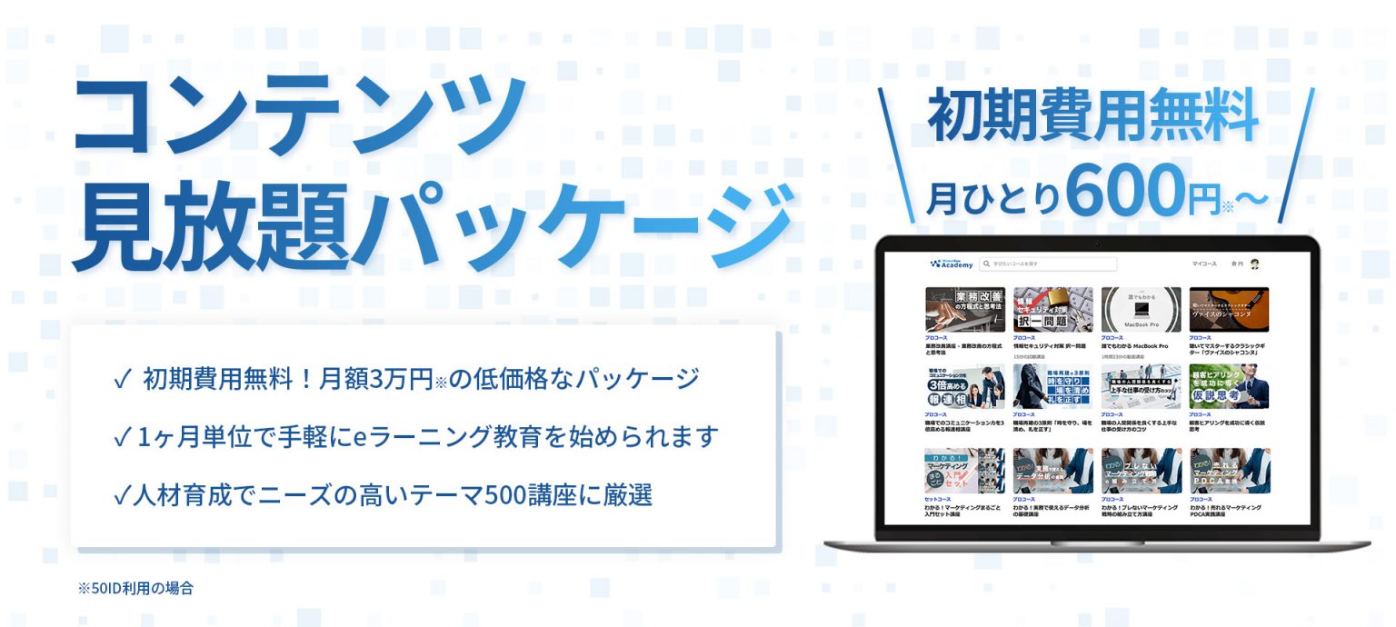 - 従量制サービス月額料金 1,000円~ / 1名1コース 備考