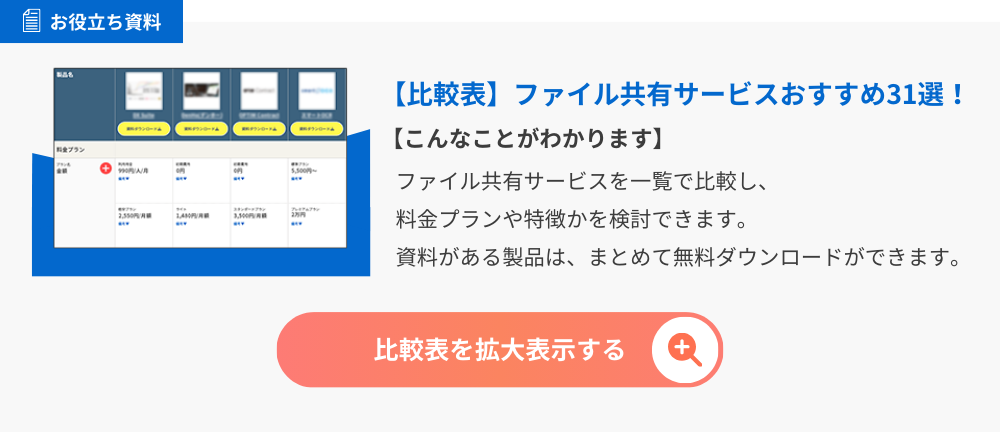 「ファイル共有サービス」の製品比較表