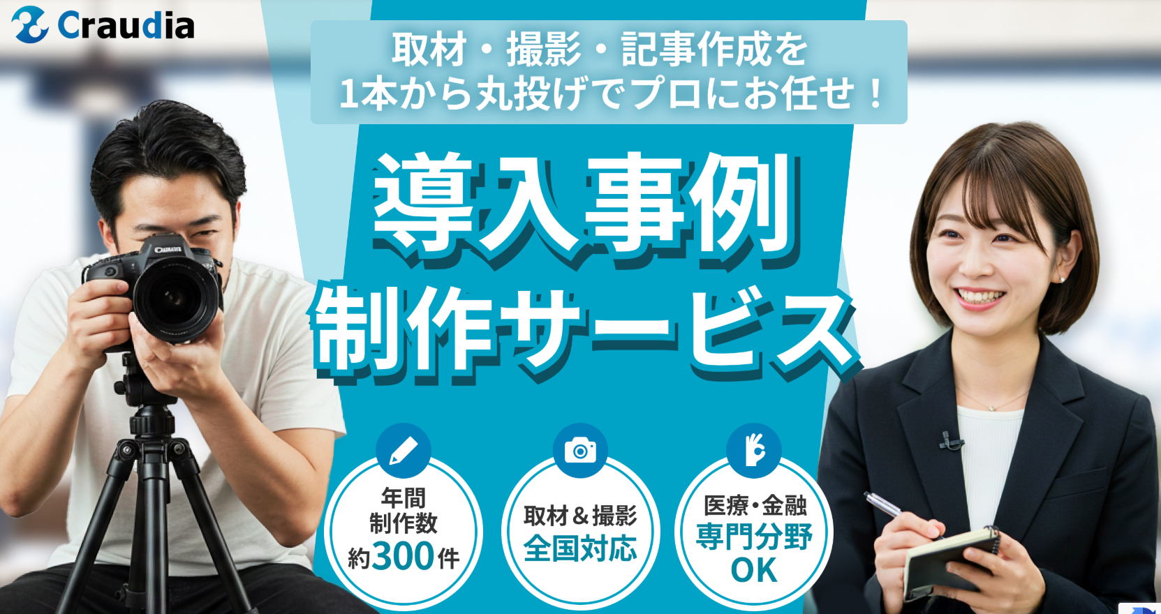 文章だけでなく、写真や動画を使用して視覚的にも魅力的な事例を制作します。これにより、事例の訴求力が増し、より多くの視聴者の注意を引くことができます。 - マーケティングと配信支援
