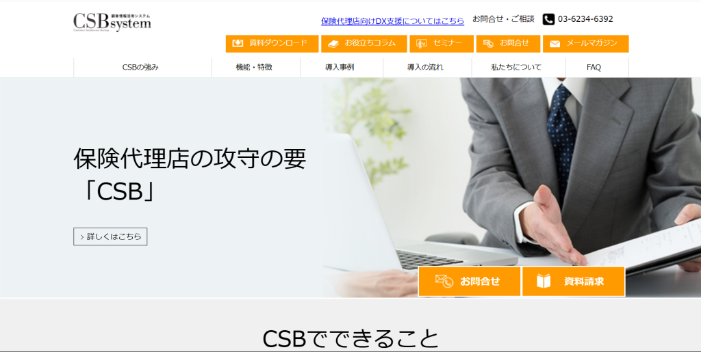 「CSBsystem」は、保険代理店の“攻守の要”を掲げる顧客・契約管理プラットフォームです。複数社契約を自動名寄せで一元管理し、意向把握や面談履歴を証跡化します。誕生日・満期の自動通知、スケジュール・掲示板、権限・勤怠管理も備え、ASP提供でスマホ利用も可能です。さらに、業界情報や教育コンテンツの提供まで備え、単なるツールにとどまらず“伴走型”で現場と経営を支えるDX基盤として機能します。