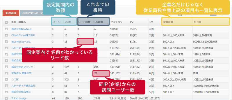 - 企業解析や個人解析といった基本的な機能が使えます。