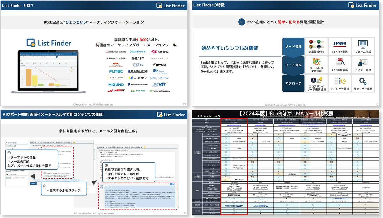 - セミナーページ作成、企業属性付与lPDF閲覧解析、フォーム作成ができます。