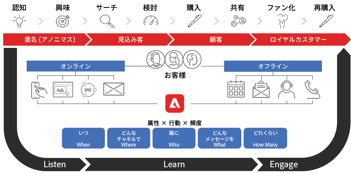 具体的には、メールや広告、ウェブ接客などを組み合わせて、顧客が興味をもったタイミングで適切なアプローチをします。
