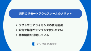 テレワークの普及に伴い、時間や場所にとらわれずにオフィス環境へアクセスできるリモートアクセスツールの需要が高まっています。特に、IT担当者が不在の中小企業やコストを抑えたい企業にとって、無料で利用できるリモートアクセスツールは魅力的な選択肢だといえるでしょう。