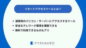 本記事で紹介したポイントを参考に、自社にとって最適なリモートアクセスツールを選定し、安全かつ効率的なリモートワーク環境を構築してください。