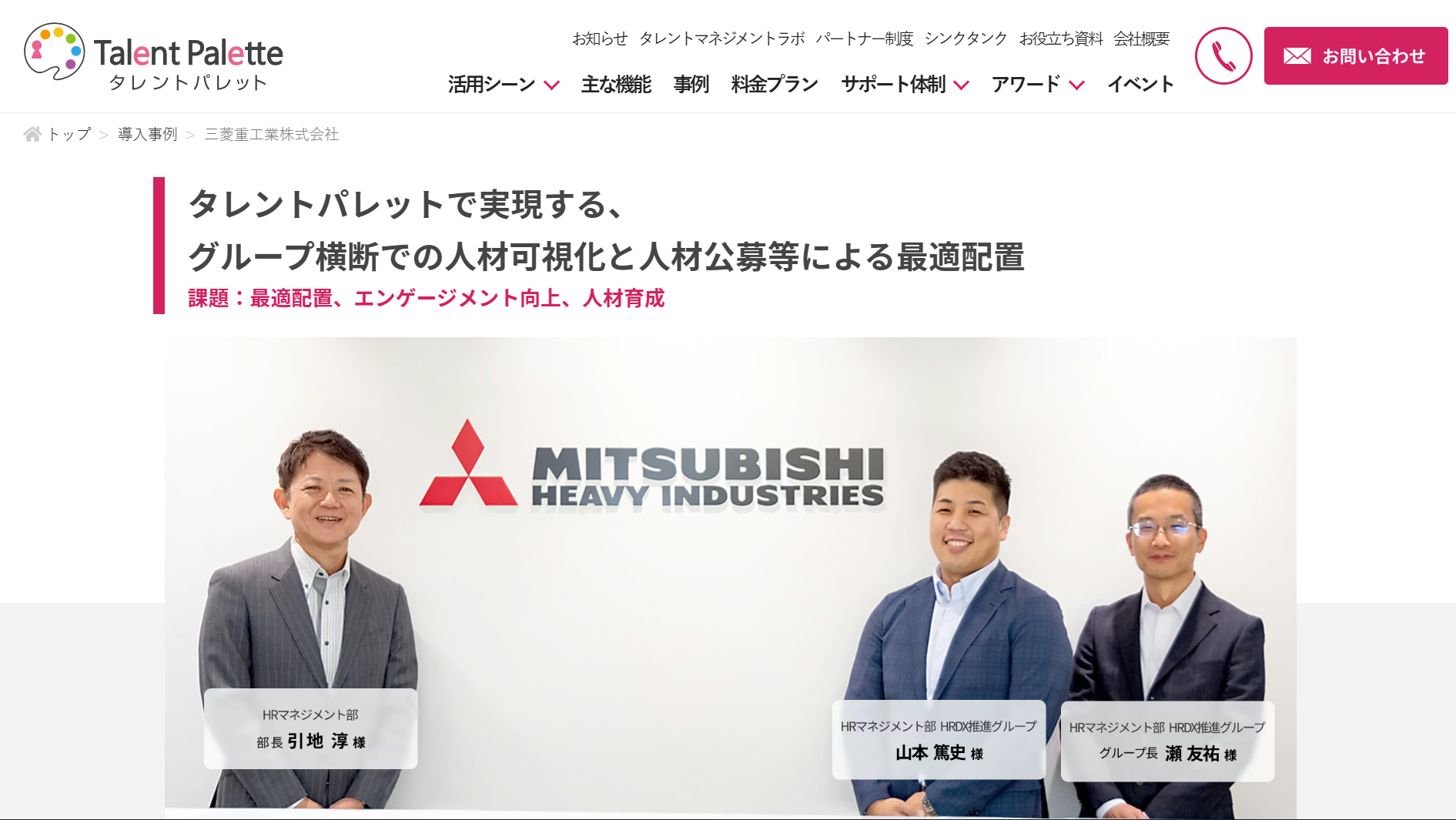 ※出典:三菱重工業株式会社|導入事例|タレントパレット|24年度シェアNo.1 タレントマネジメントシステム