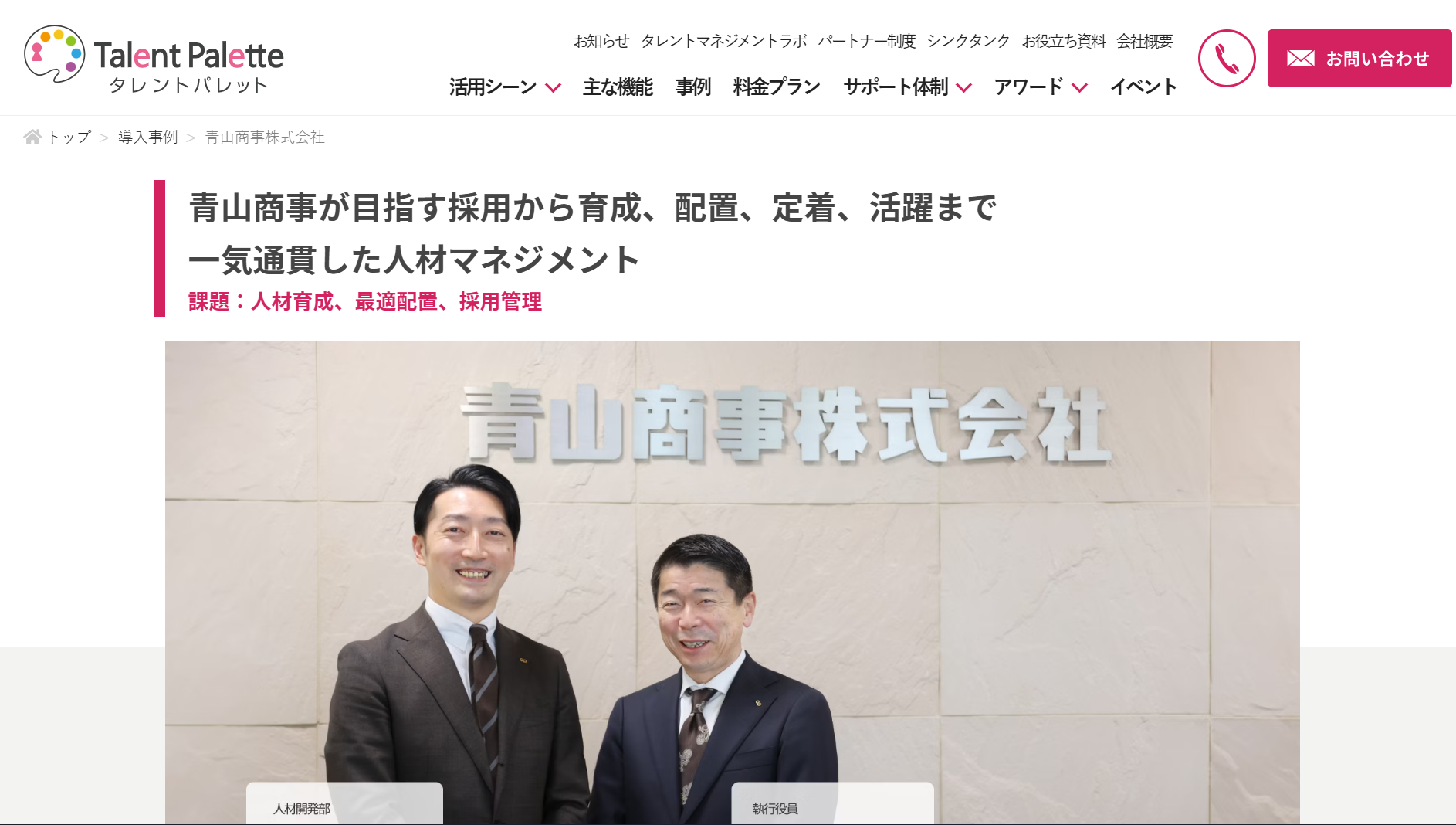 ※出典:青山商事株式会社|導入事例|タレントパレット|24年度シェアNo.1 タレントマネジメントシステム