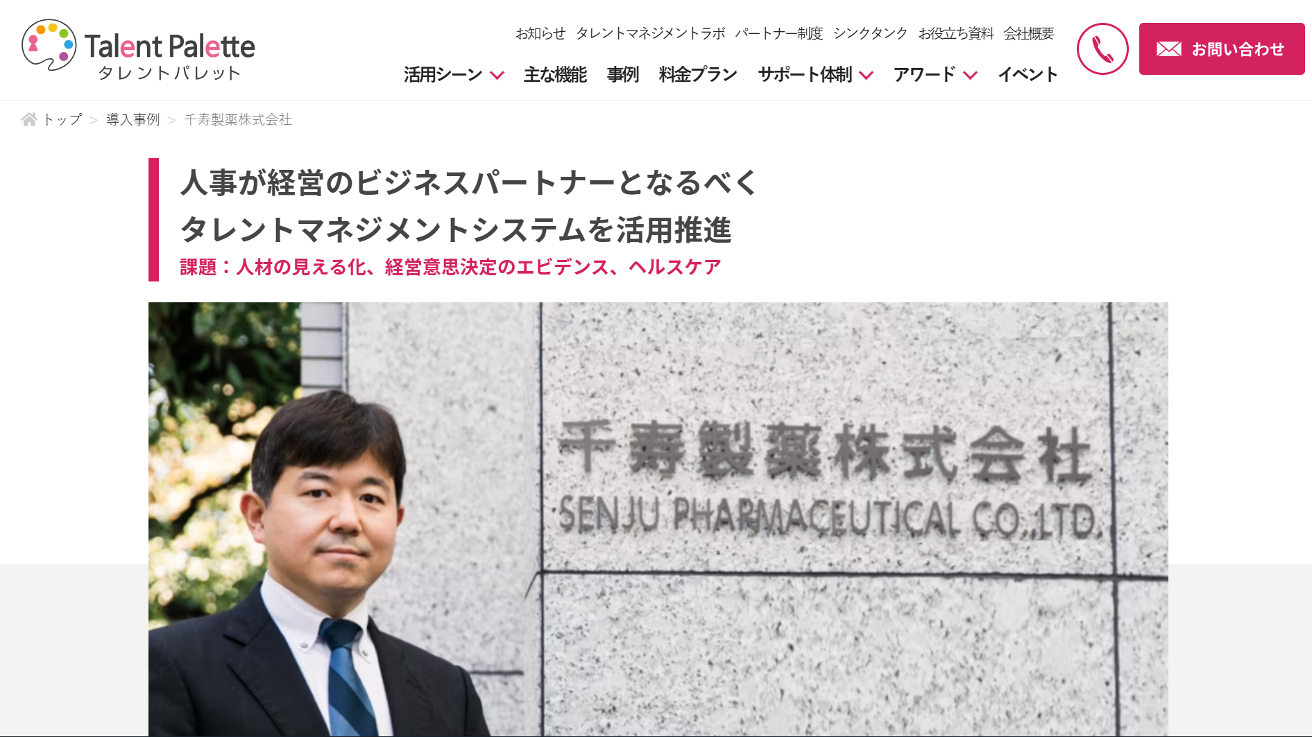 ※出典:千寿製薬株式会社|導入事例|タレントパレット|24年度シェアNo.1 タレントマネジメントシステム