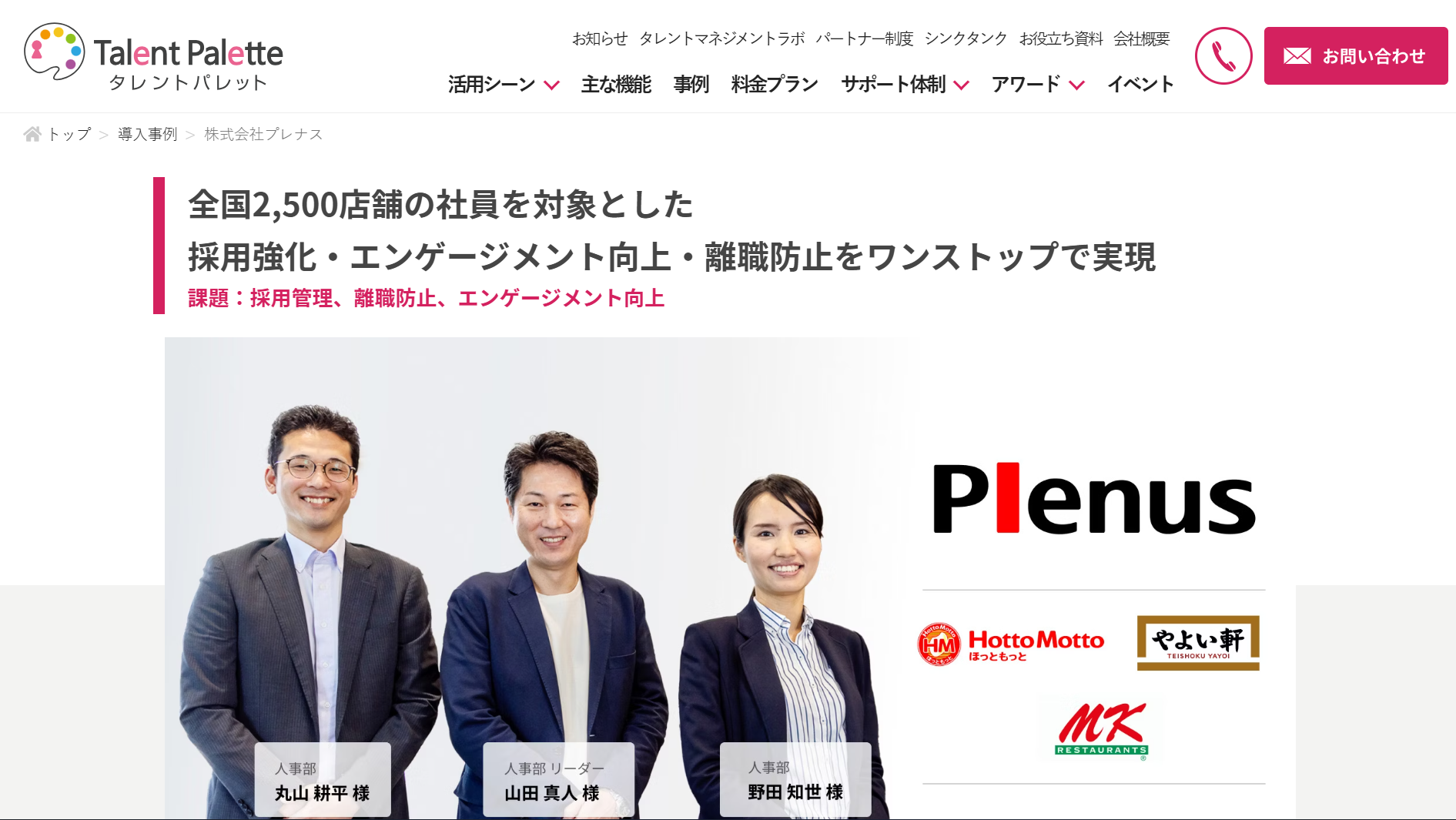 ※出典:株式会社プレナス|導入事例|タレントパレット|24年度シェアNo.1 タレントマネジメントシステム
