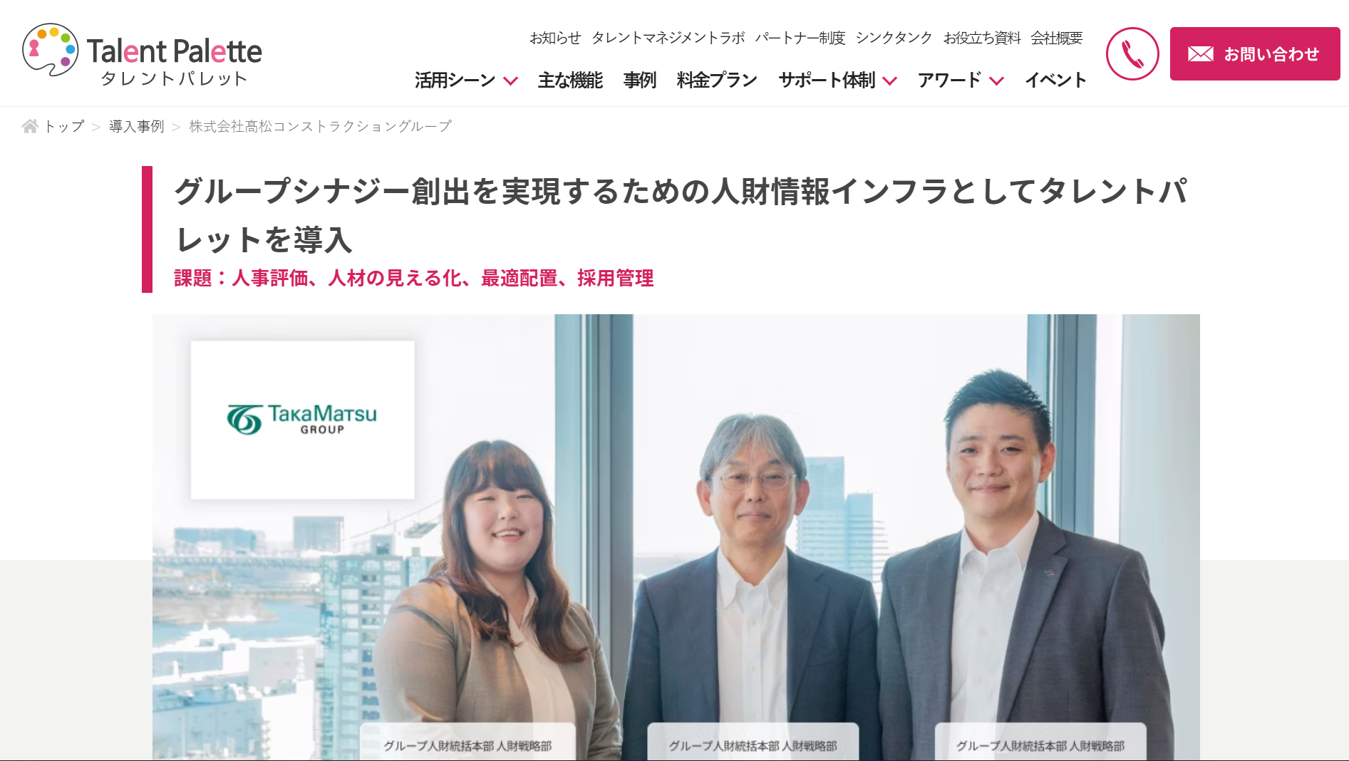 ※出典:株式会社髙松コンストラクショングループ|導入事例|タレントパレット|24年度シェアNo.1 タレントマネジメントシステム