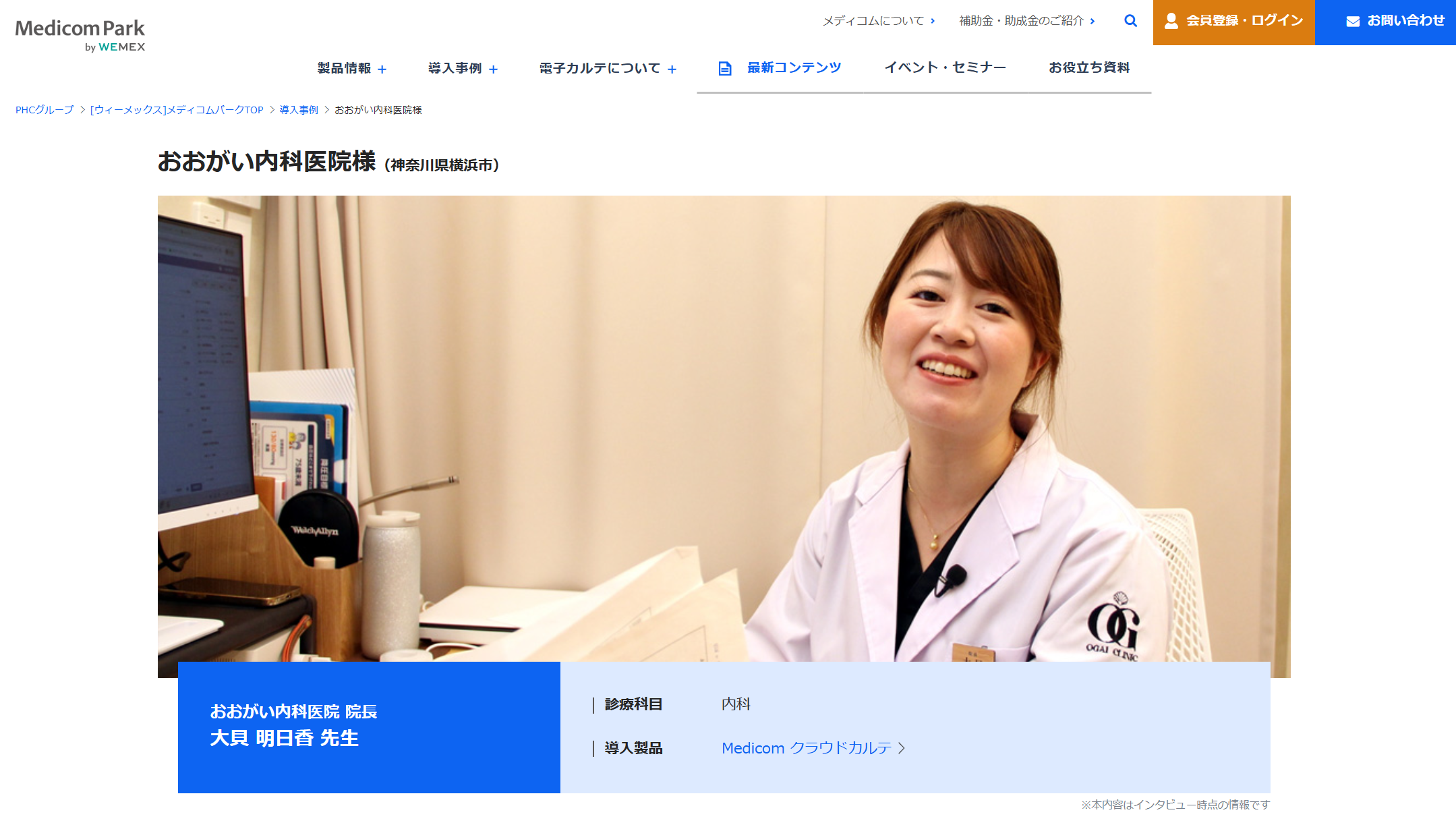 ※出典:おおがい内科医院様 | 事例 |Medicom クラウドカルテ