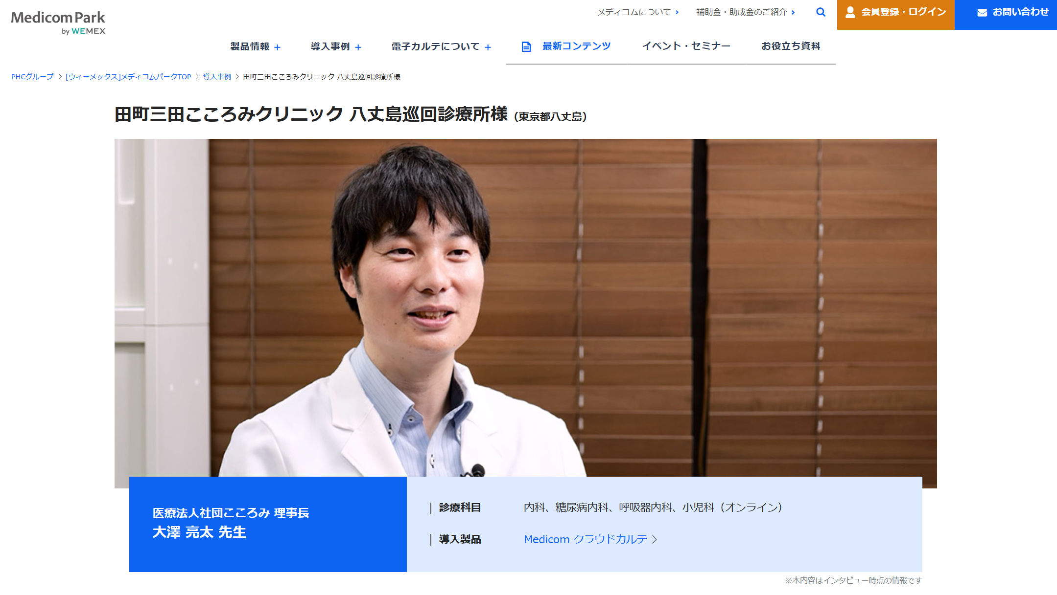 ※出典:田町三田こころみクリニック 八丈島巡回診療所様 | 事例 |Medicom クラウドカルテ