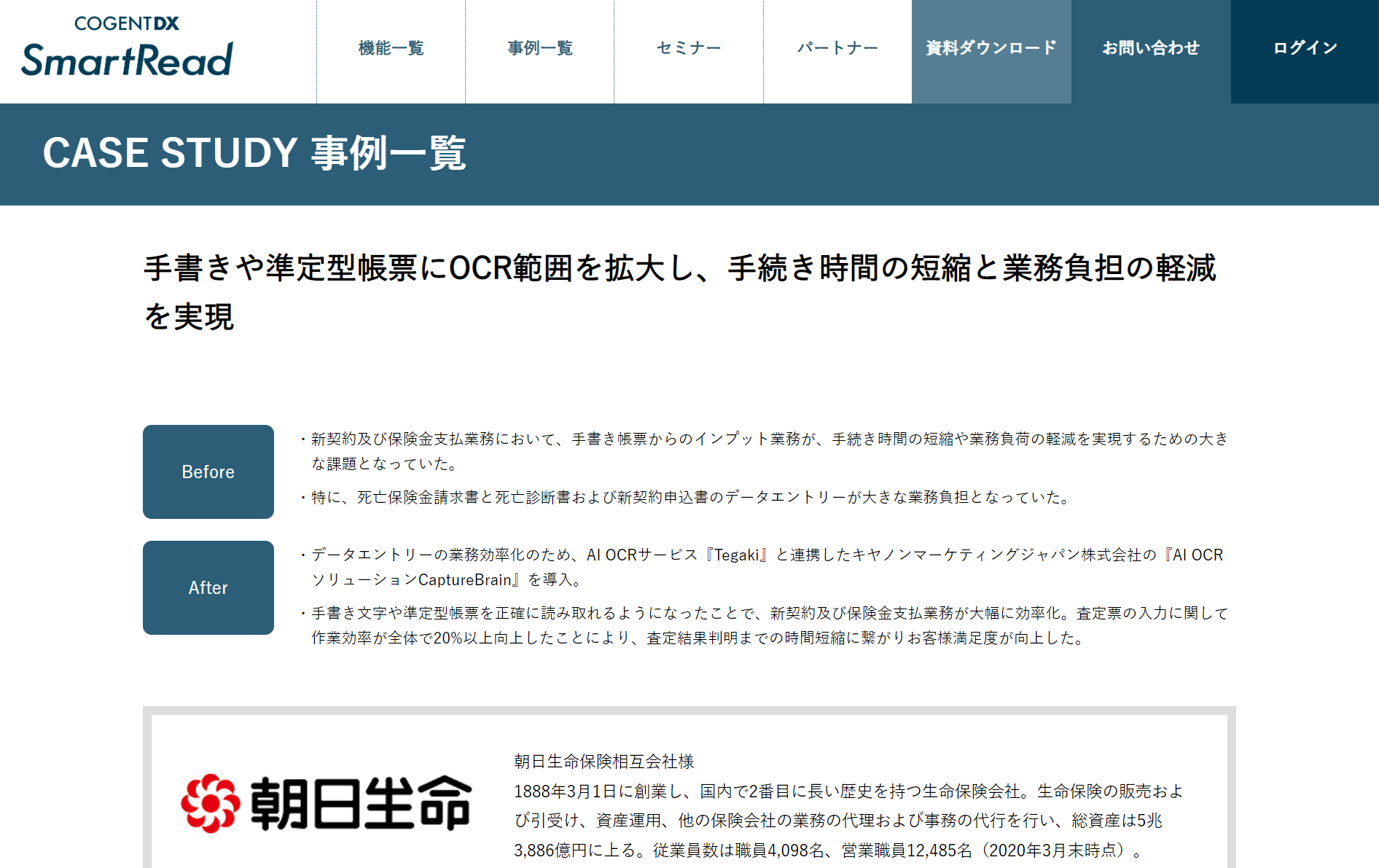 ※出典:手書きや準定型帳票にOCR範囲を拡大し、手続き時間の短縮と業務負担の軽減を実現 | Smartread.jp