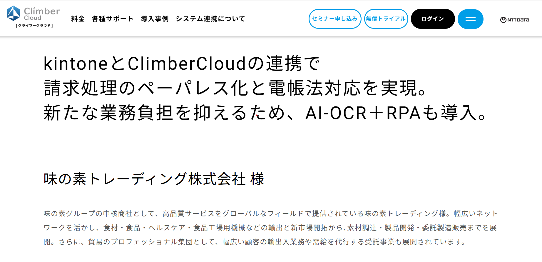kintoneとClimberCloudの連携で 請求処理のペーパレス化と電帳法対応を実現。 新たな業務負担を抑えるため、AI-OCR+RPAも導入。