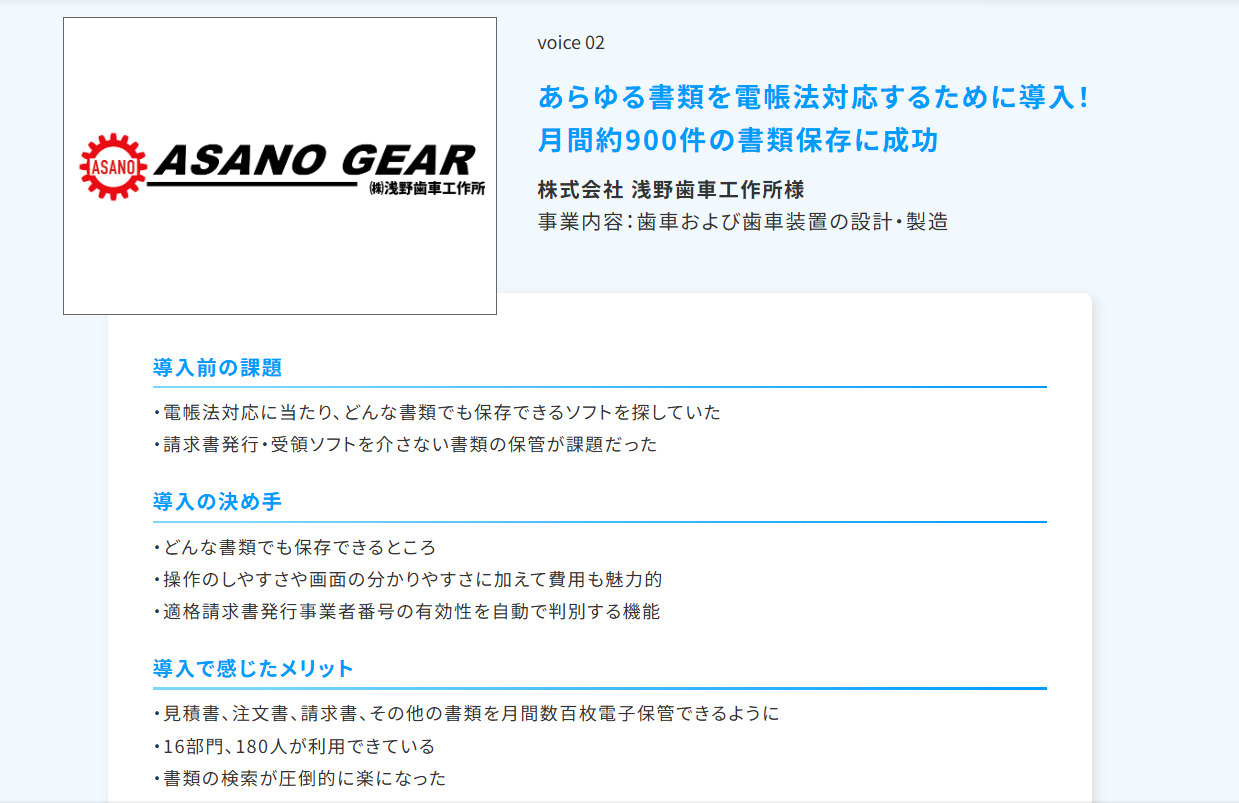 あらゆる書類を電帳法対応するために導入! 月間約900件の書類保存に成功