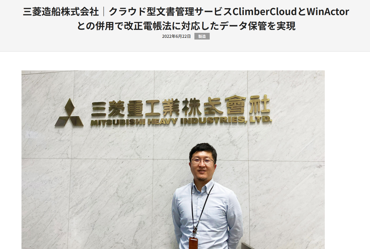 クラウド型文書管理サービスClimberCloudとWinActorとの併用で改正電帳法に対応したデータ保管を実現