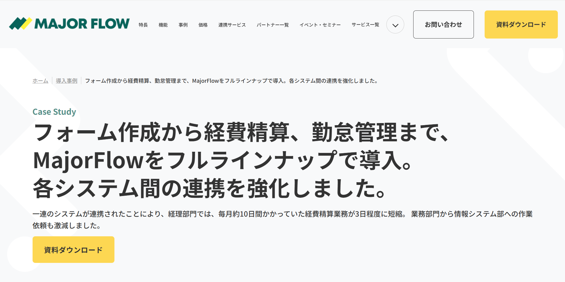 ※出典:フォーム作成から経費精算、勤怠管理まで、 MajorFlowをフルラインナップで導入。各システム間の連携を強化しました。