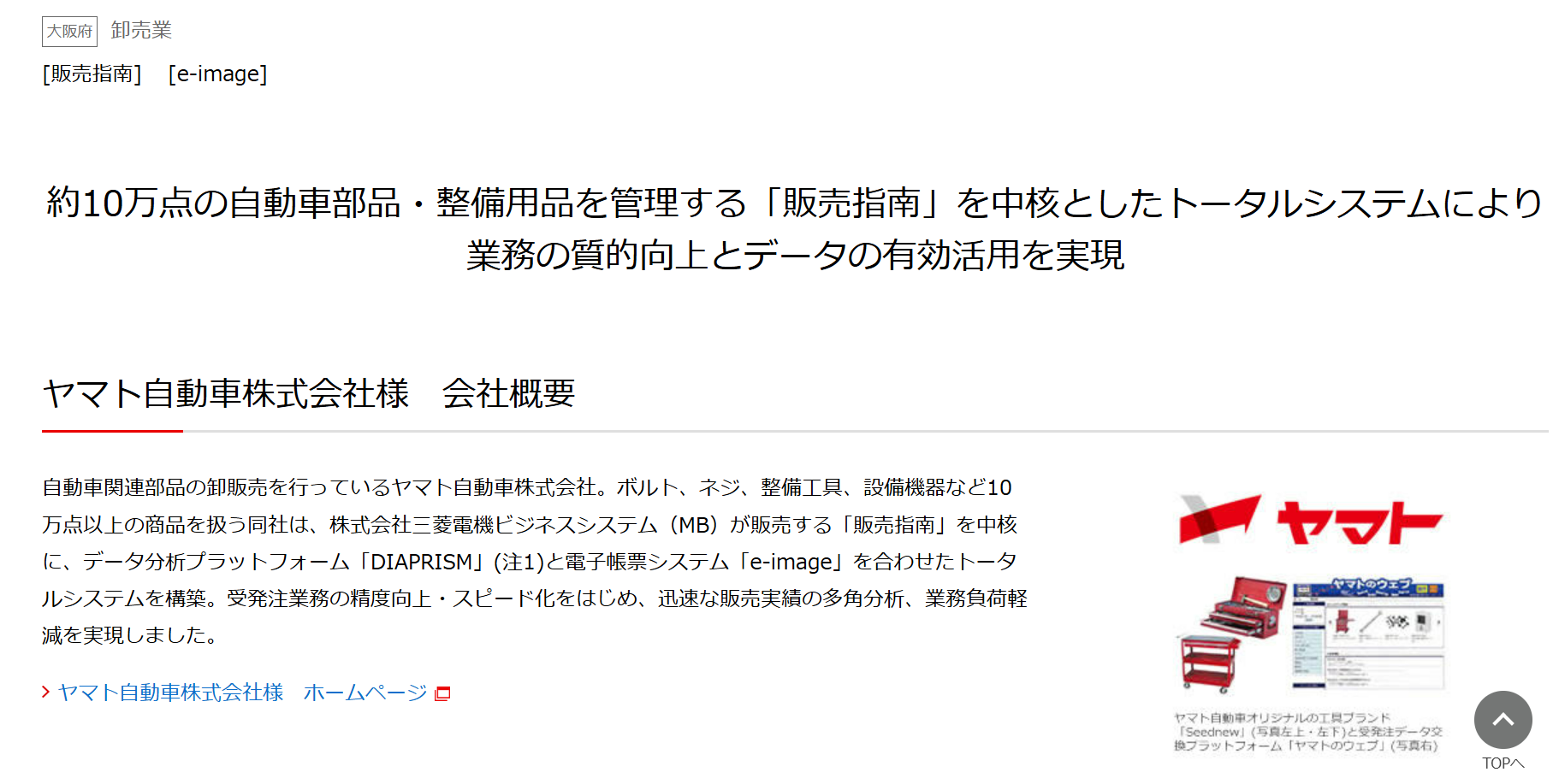 約10万点の自動車部品・整備用品を管理する「販売指南」を中核としたトータルシステムにより業務の質的向上とデータの有効活用を実現