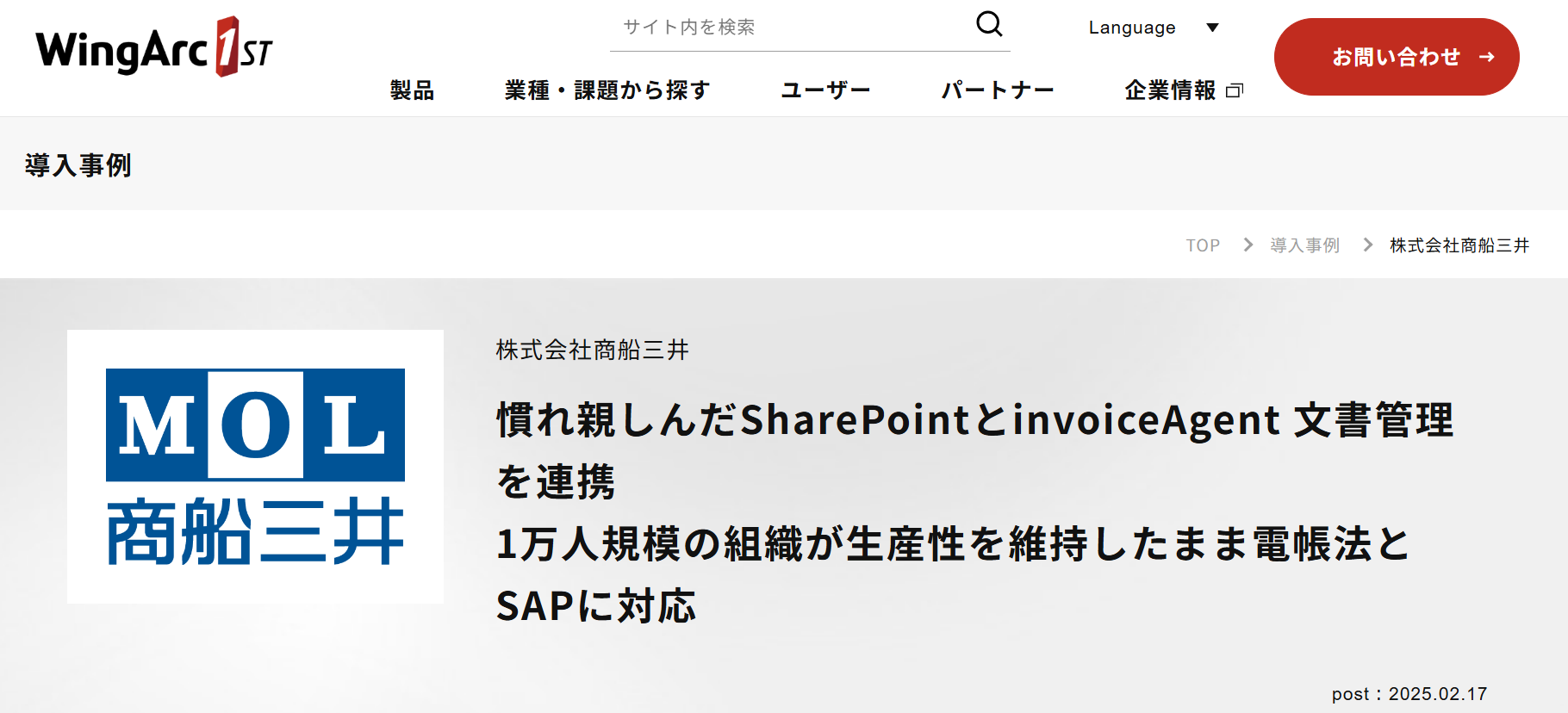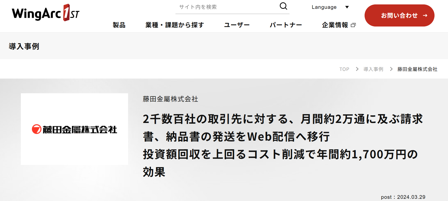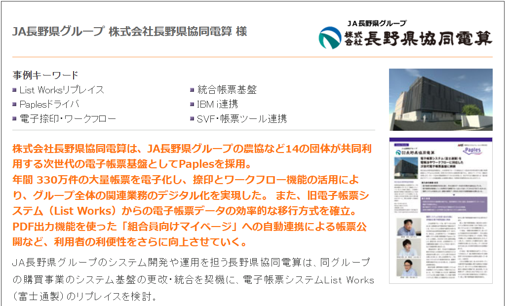 2千数百社の取引先に対する、月間約2万通に及ぶ請求書、納品書の発送をWeb配信へ移行 投資額回収を上回るコスト削減で年間約1,700万円の効果