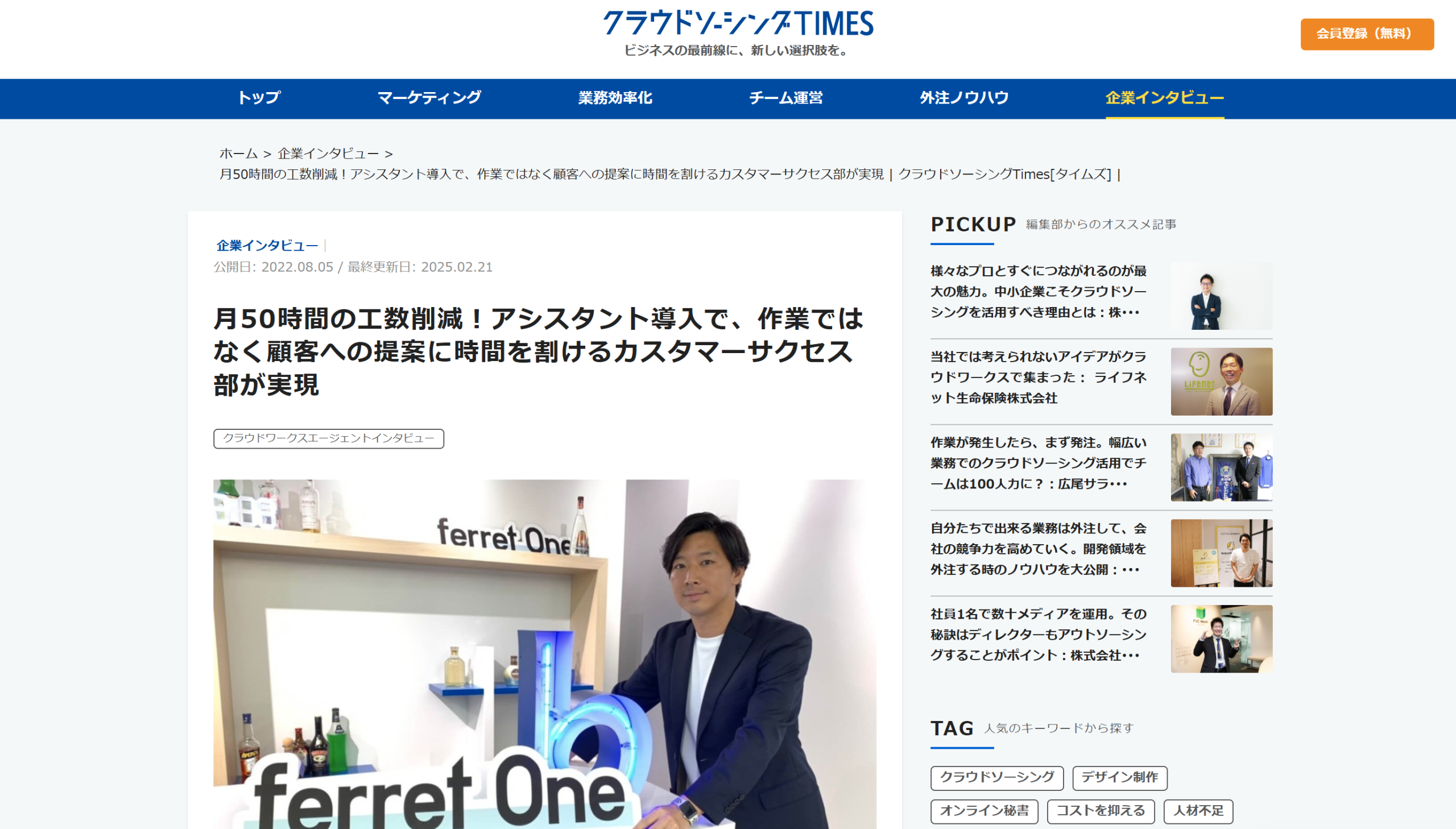 ※出典:月50時間の工数削減!アシスタント導入で、作業ではなく顧客への提案に時間を割けるカスタマーサクセス部が実現 | クラウドソーシングTimes[タイムズ] |