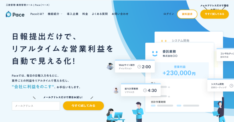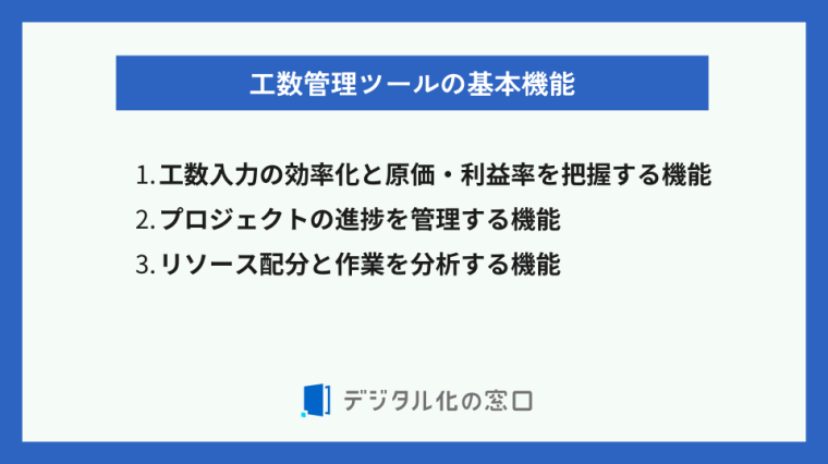 - 工数管理やプロジェクト管理などの基本機能を搭載。