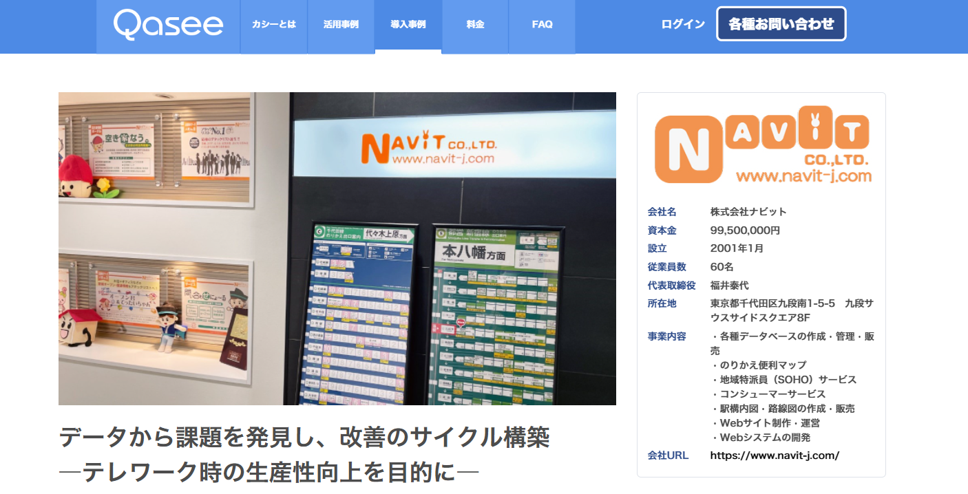 働き方のデータを自動収集し勤務状況・働き方・業務プロセス・導入システムをQaseeが持つ指標で評価され、改善が必要となるポイントが詳細に指摘されます。一般的・共通的な問題課題の発見が自動化され、必要な改善の一手をすぐに打てることで、独自性を求められるビジネスチャレンジにリソースを振り向けることができます。
