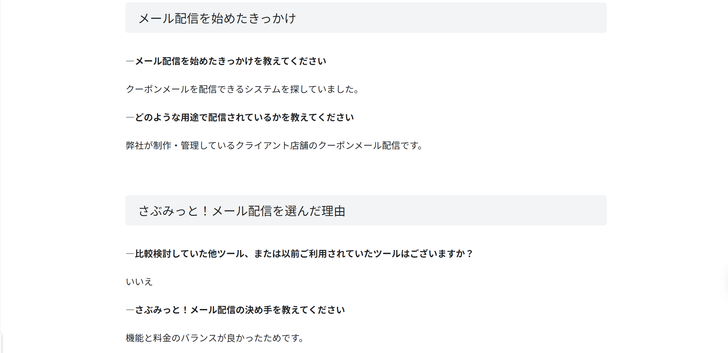 外部API連携 差し込み機能 多言語対応 会員カルテ機能 個別配信機能 ワンクリック退会 独自ドメイン クリーニング配信 くじ作成機能 クーポン作成機能 キャリアブロック回避 ステップメール配信 コンテンツコピー機能 HTMLメール作成 ABテスト配信 2クリック退会 SEO対策機能 マルチパート配信 ブラックリスト管理機能 レスポンス別メール配信 リアルタイムレポート |