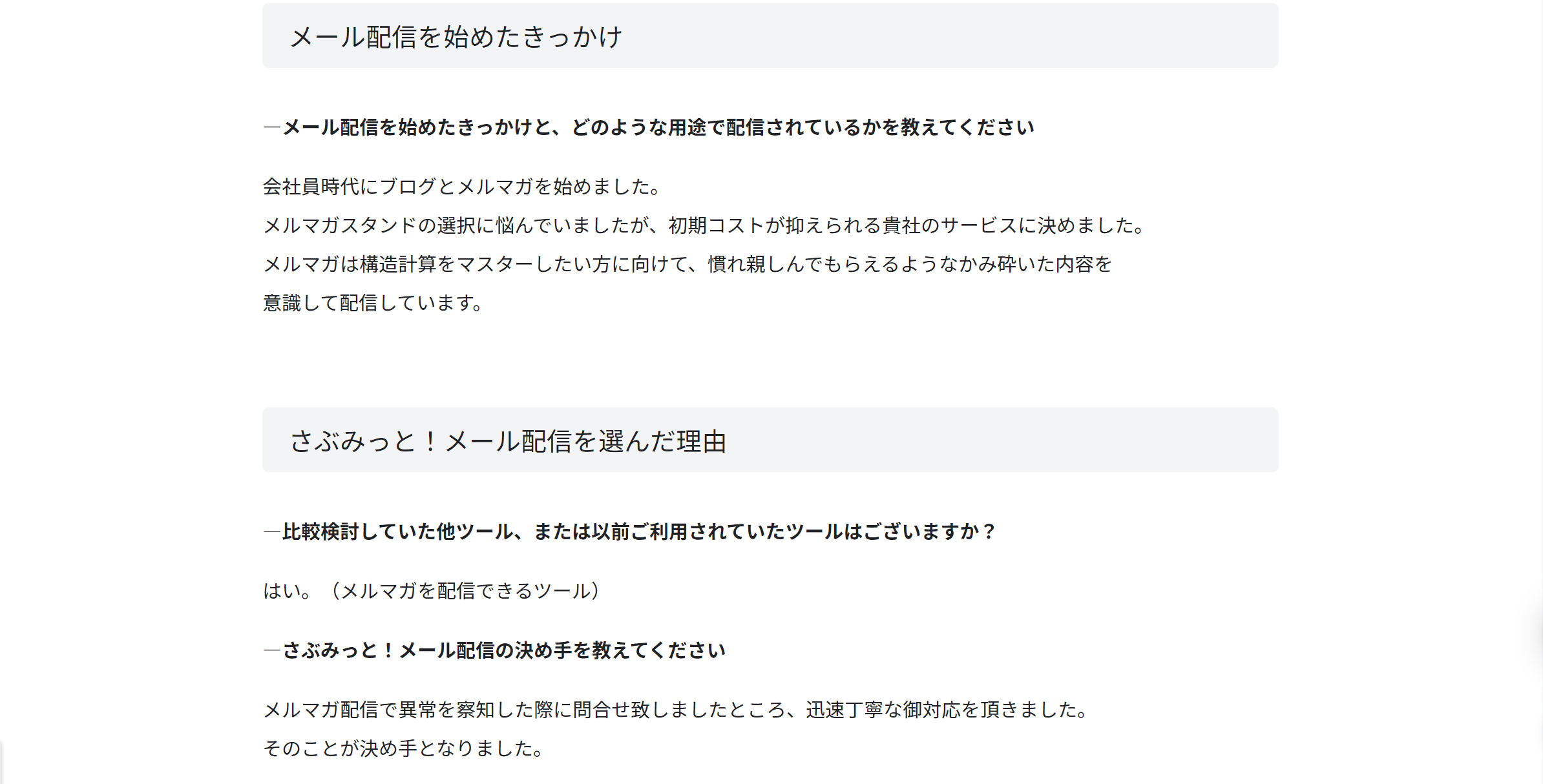 読者それぞれのメールマガジン本文内に自動的に読者項目を差込む(表示する)ことができます。差し込みタグを設定すれば、メール本文中にお客様のお名前を差し込むこともできます。お名前以外にも、メールアドレスや住所など、登録されている読者データはすべて差し込むことができます。