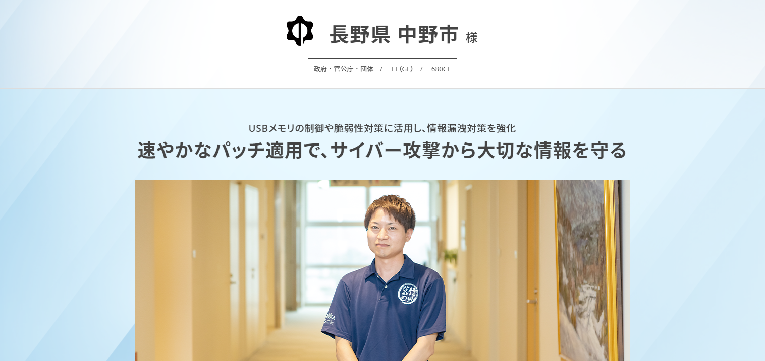※出典:長野県 中野市 様-導入事例|速やかなパッチ適用で、サイバー攻撃から大切な情報を守る|ITセキュリティ対策とリスクの発見を支援 SKYSEA Client View