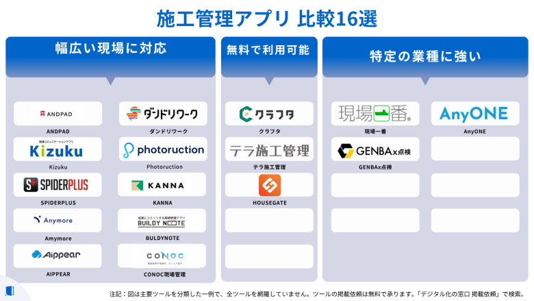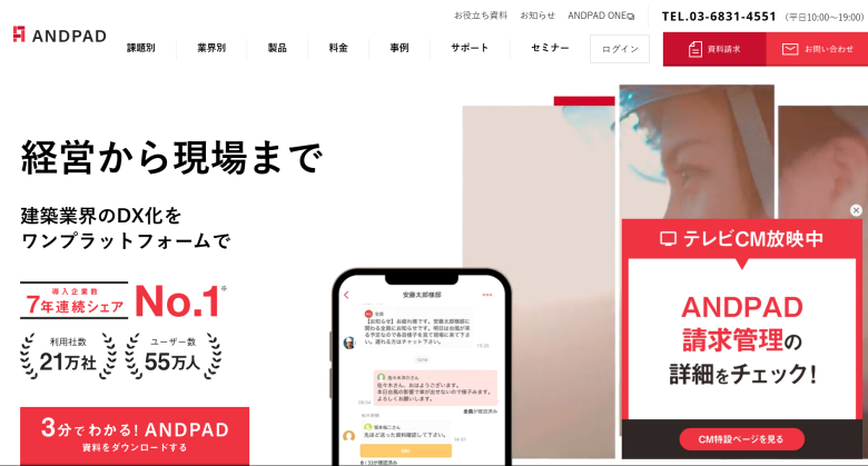 株式会社アンドパッドのANDPADは、現場の効率化から経営改善まで一元管理できるシェアNo.1施工管理アプリです。工程表・写真・図面などの最新情報をクラウドで一元管理できる施工管理や、作業員と多数の現場をらくらく管理できるボードなど複数の製品をオプションで選択できるようになっています。現在、利用社数21万社、ユーザー数55万人を超える建設業界の人々にご利用されています。