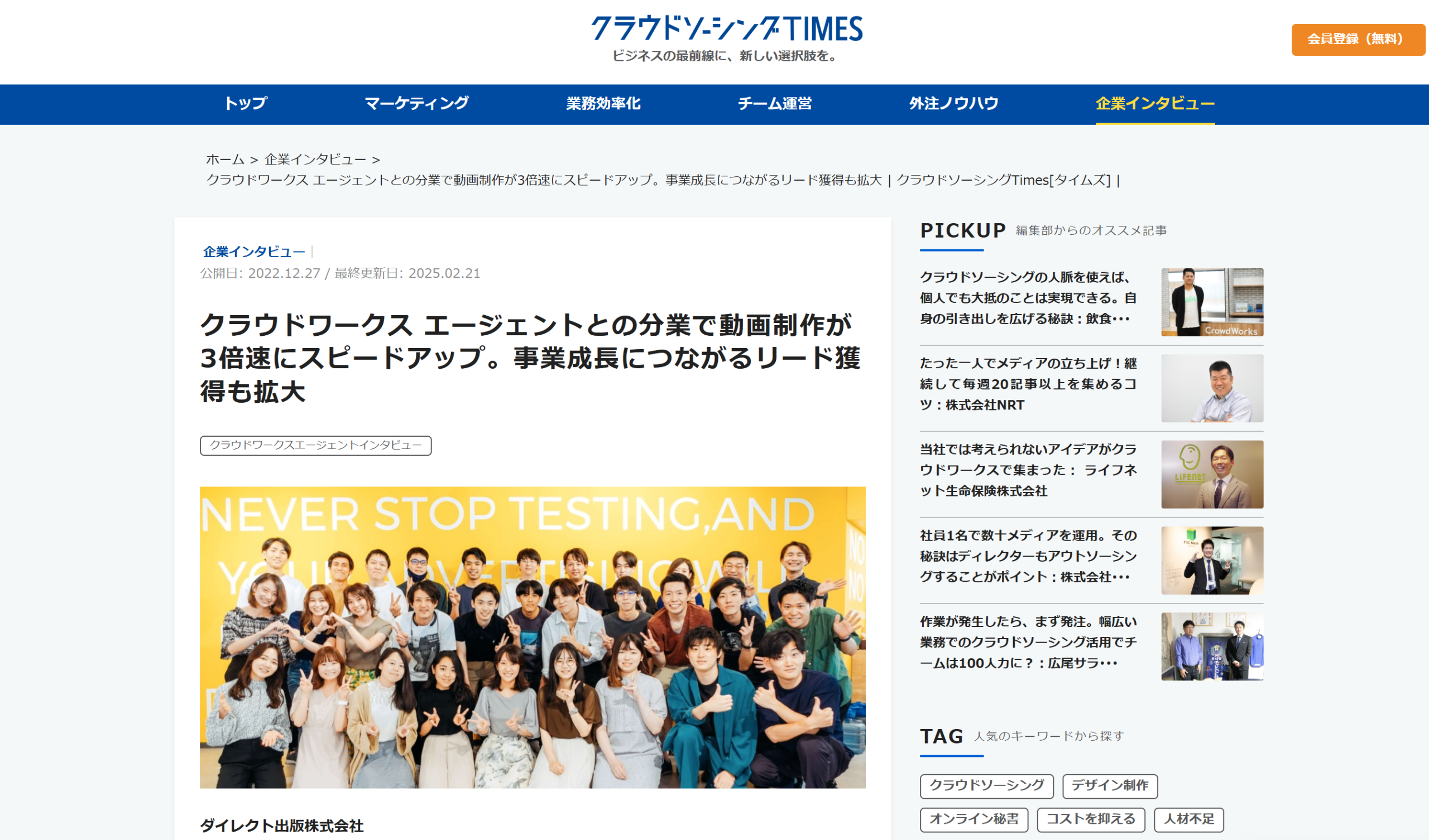 - 本来注力すべき社員の業務に時間を活用すべく、クラウドワークス エージェントを導入
