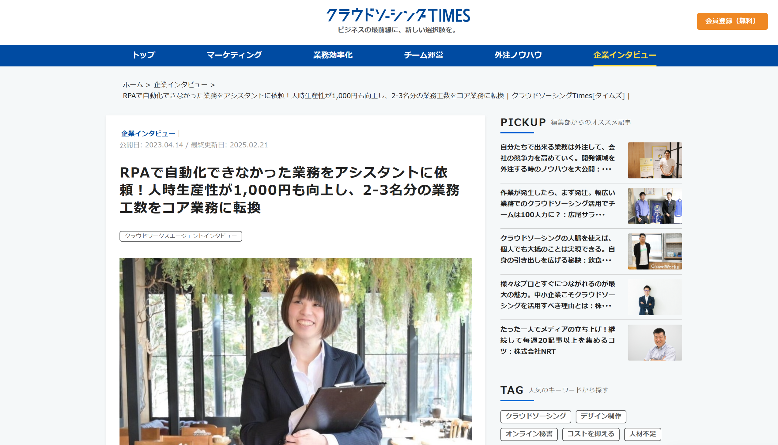 ※出典:毎月約1,200件の専門性が高い入力業務をアシスタント2名で無駄なく対応!代わりの利かない存在へ | クラウドソーシングTimes[タイムズ] |